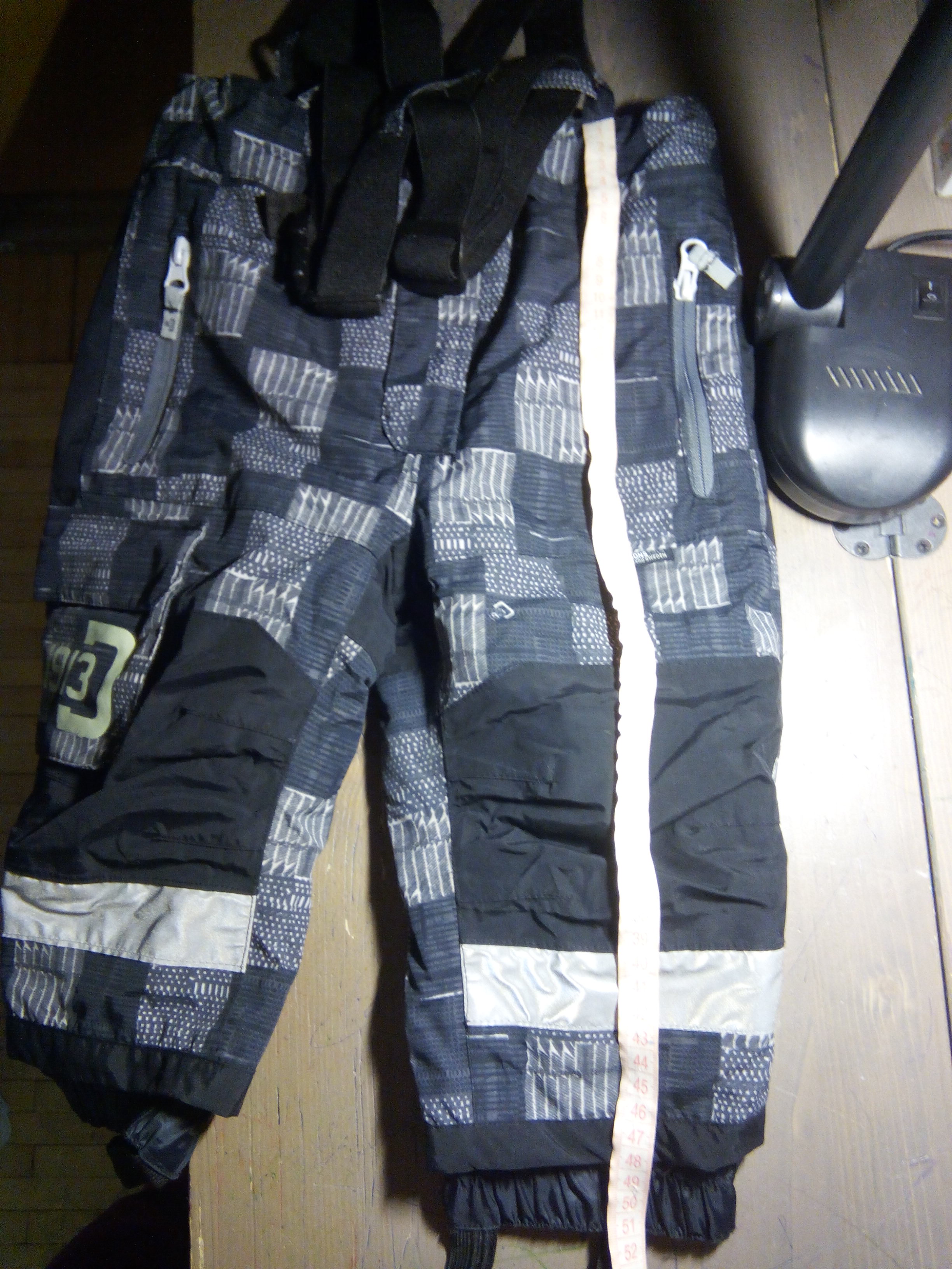 верх - 100 % нейлон 2 слоя, утеплитель топсфил - 120гр/м2 - съёмные ремни и подтяжки - на молнии - снежные гетры на резинках(чтоб не засыпался снег) - застёжки - молнии в нижней части брюк - светоотражатели - петля для ступни - усилена область коленей и попы - накладные карманы